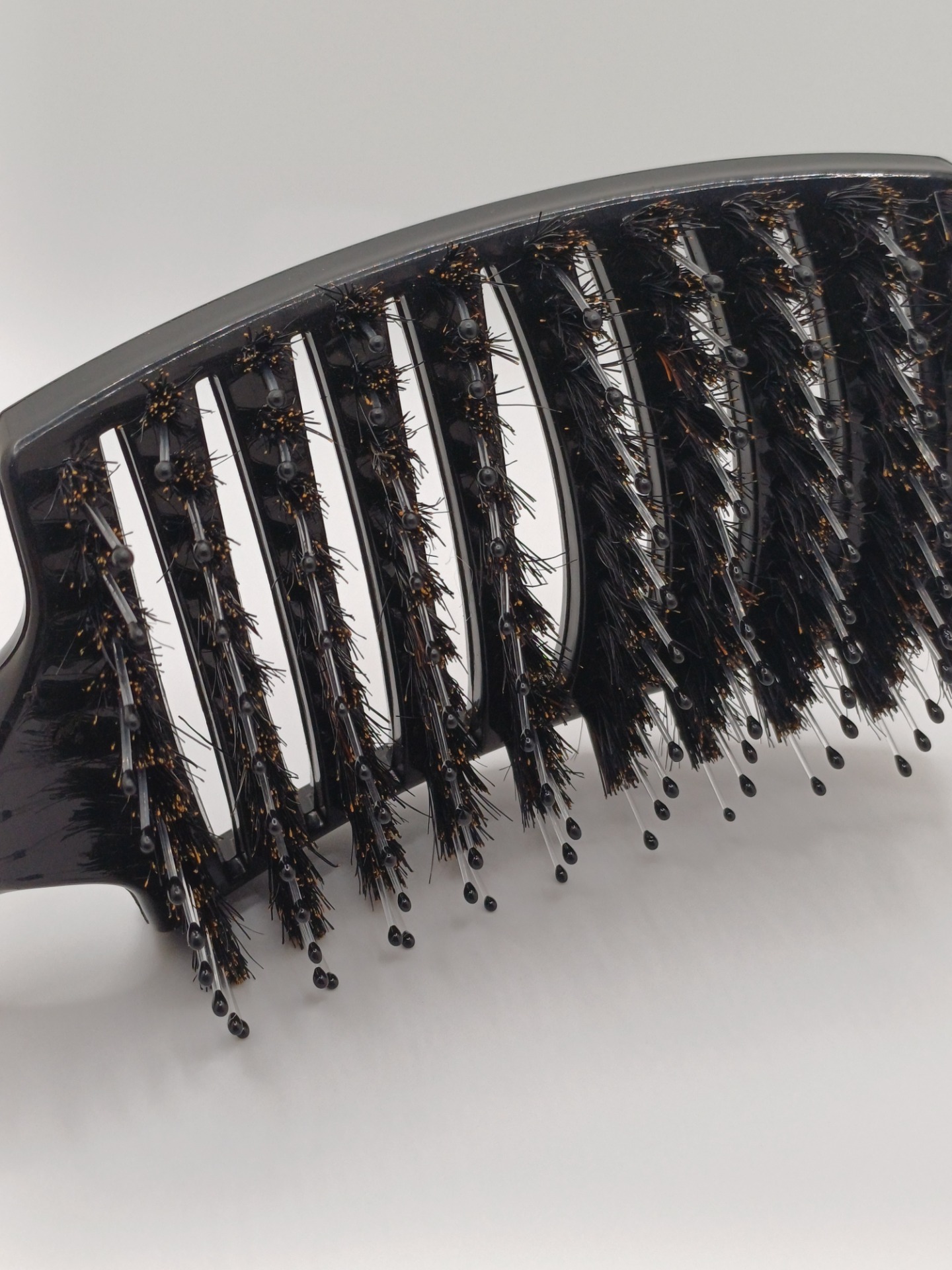 Dual briste vent hair brush. This lightweight brush features a non slip handle, curved design, perfect for detangling and smoothing hair. The double bristles allow the brush to glide through the hair seamlessly