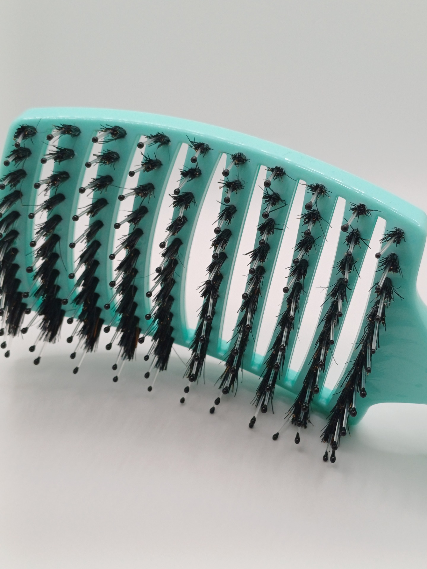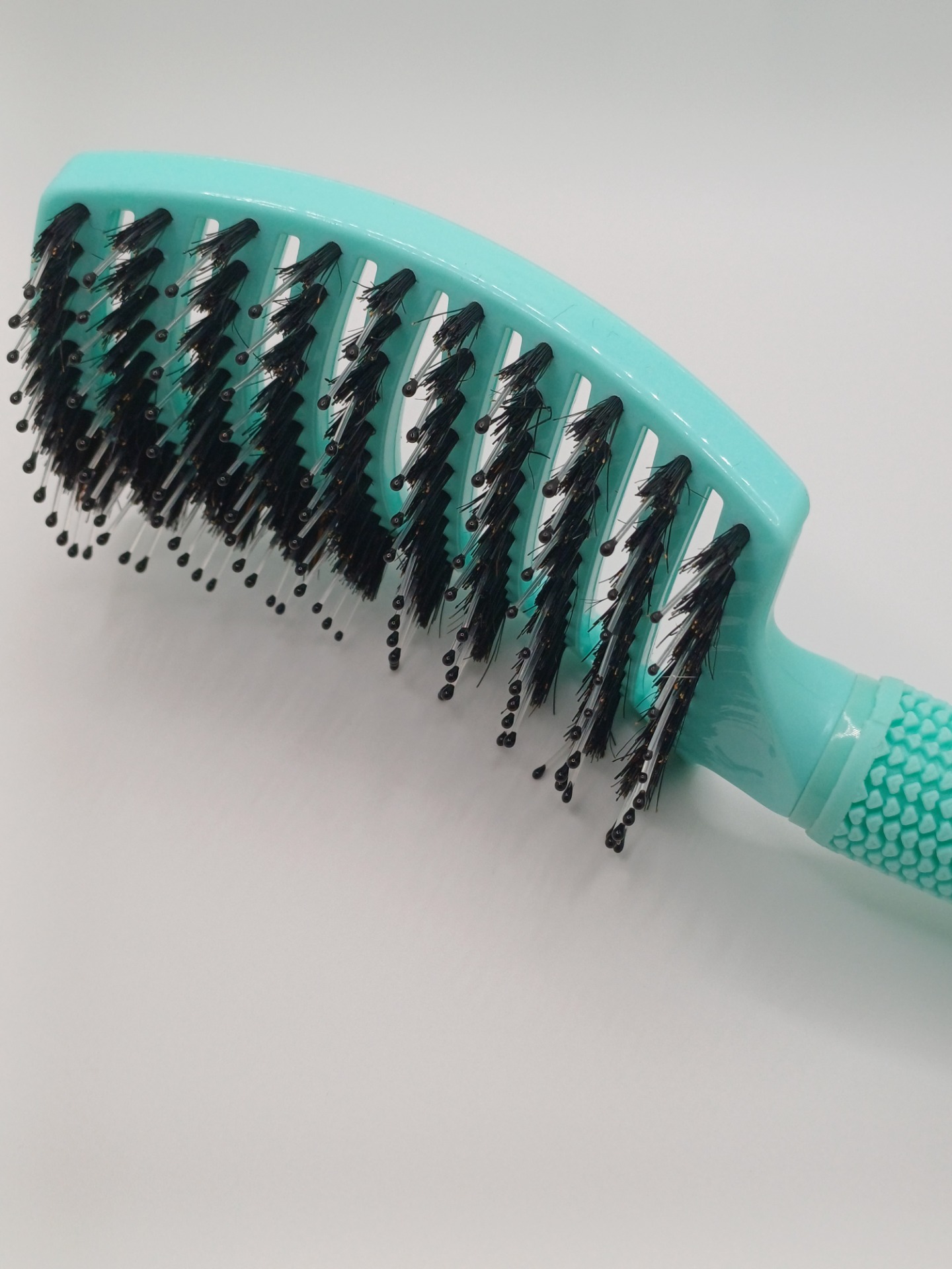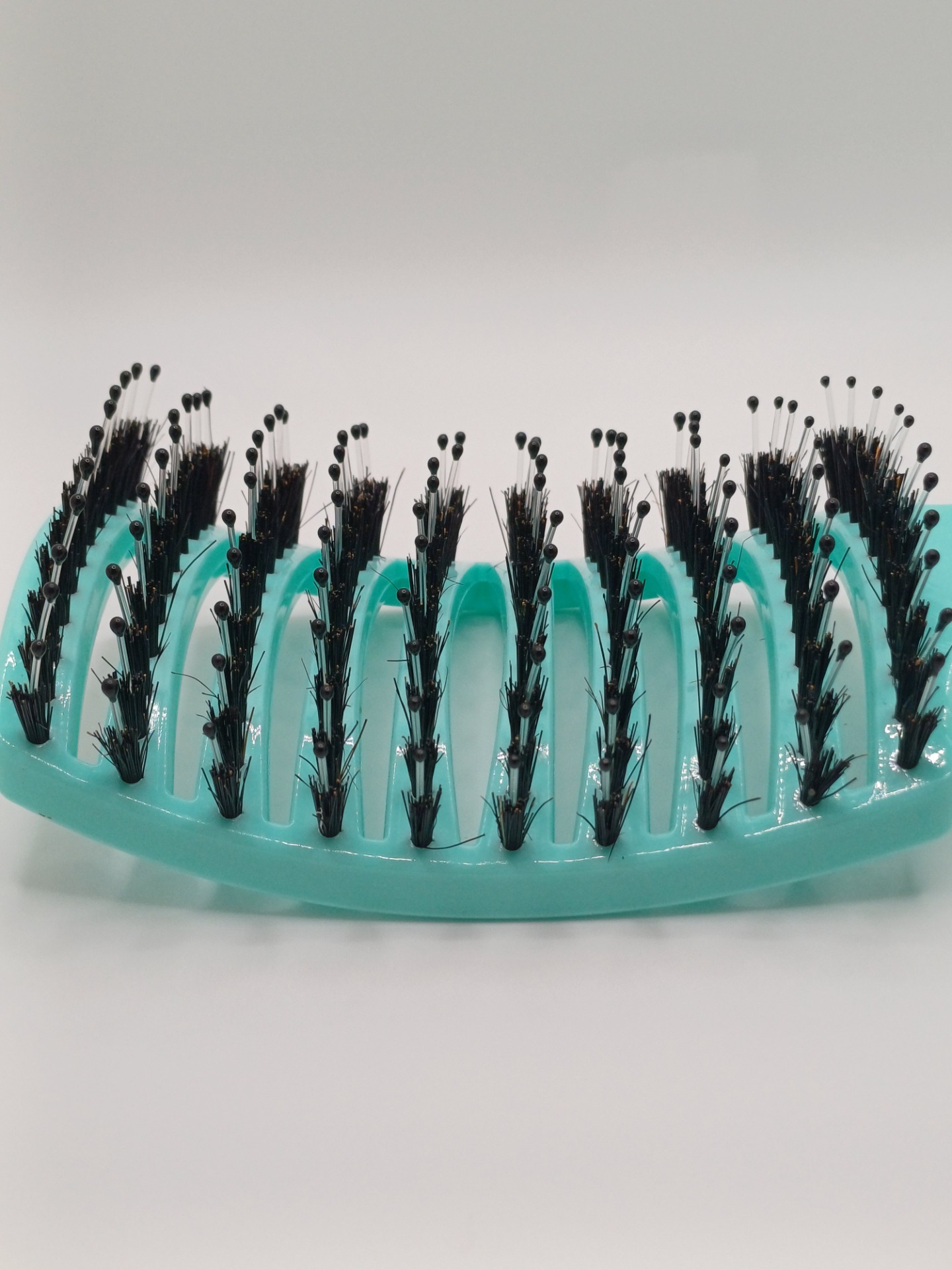 Dual briste vent hairbrush. This lightweight brush features a non slip handle, curved design, perfect for detangling and smoothing hair. The double bristles allow the brush to glide through the hair seamlessly
